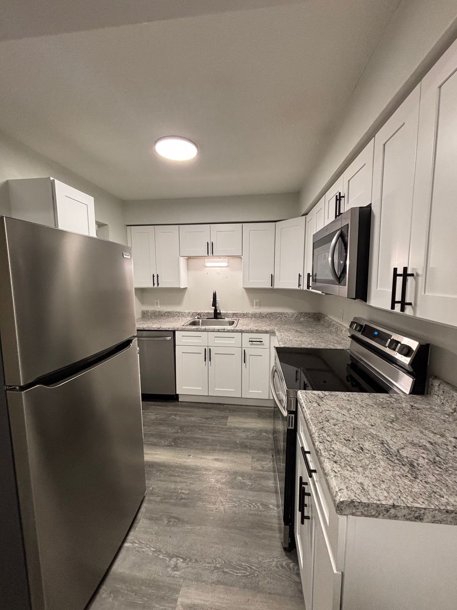Updated Interiors & Quality Finishes The unit has been 100% remodeled to deliver a fresh, contemporary feel. You'll find new flooring throughout, new windows that invite natural light, and updated fixtures that create a clean, cohesive look. The fully renovated bathroom features updated surfaces and modern fittings, while the kitchen showcases new cabinets and a convenient dishwasher for easy cleanup.